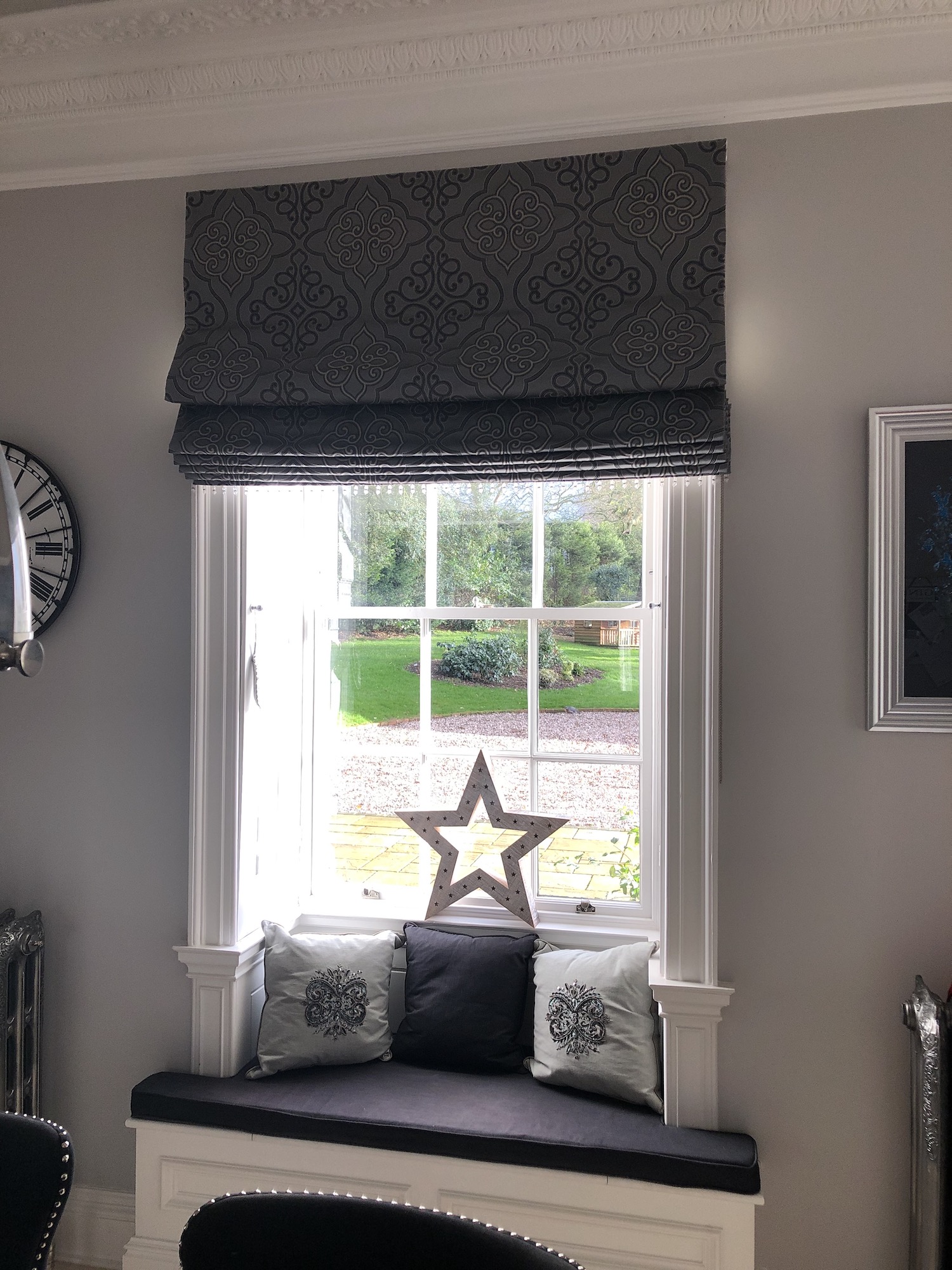 All our blinds come with a child safety breakaway system which is chain operated with a choice of chain colours tested to British standards. We use a blackout interlined lining to give a luxurious look to even the most delicate of fabrics and if used in a bedroom ensures no light passes through. All blinds are hand-sewn with weighted bottom bars unless a shape is required. We can make any size and add any trimmings.